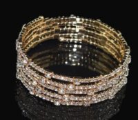 Браслет для фитнес-бикини со стразами в форме переплетенных между собой колец из страз. Максимальная ширина браслета – 3.5 см, длина – 19.8 см.